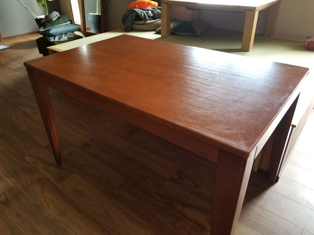 - 悩み悩み悩みまくって数年。 ついに買う勇気を出しました。 サンプルも頂いたし、大丈夫! と思って買いましたが、 想像以上に満足してます。 食事も楽しくなるし、子供達も勉強したり私もしごとしたり、大きすぎず小さすぎずの本当にちょうど良い大きさでした。 木の香匂いも芳しく、色合いも家に合ってます。 ありがとうございました!